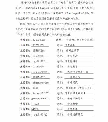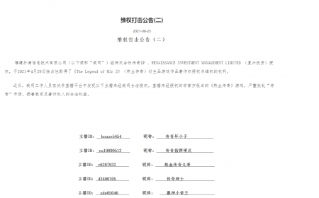 202108-30维权打击公告(二) 世界杯官方端网站登录入口信息技术有限公司(以下简称“我司”)经株式会社传奇IP 、RENAISSANCE INVESTMENT MANA...
